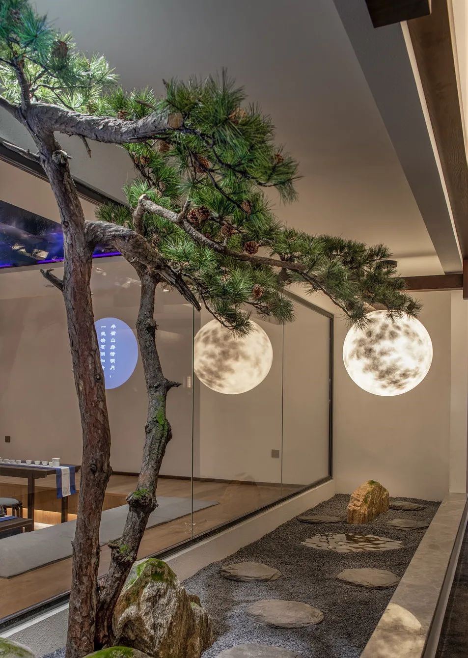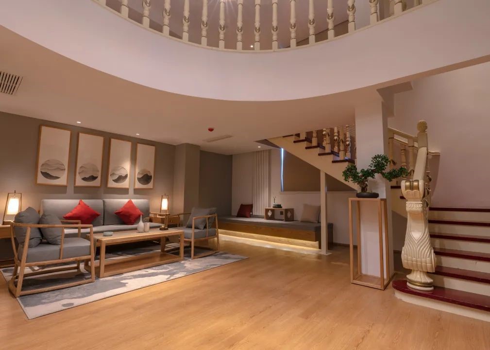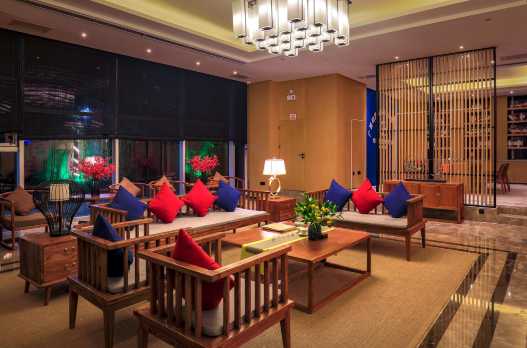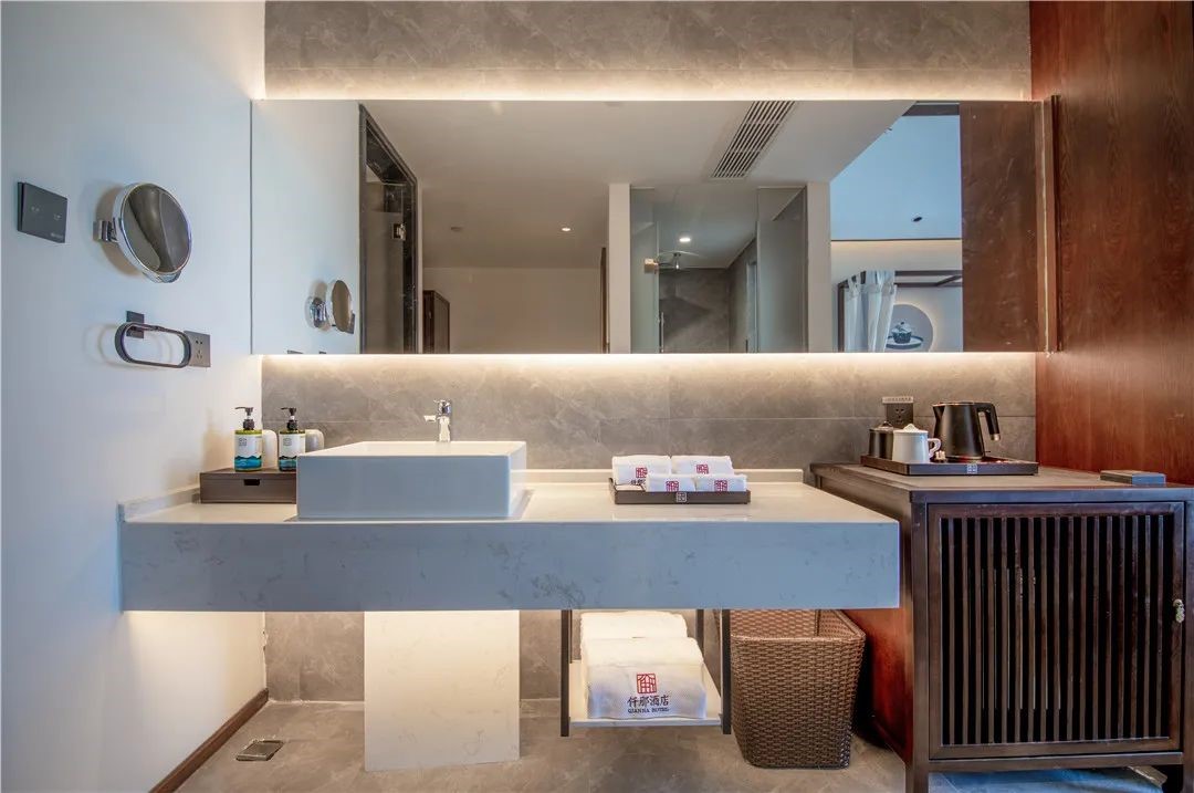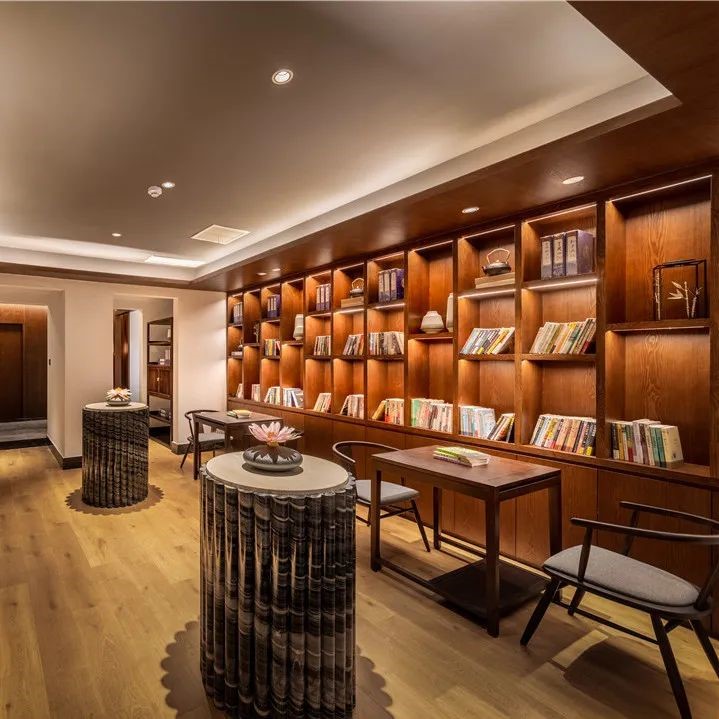 酒店前台、走廊与休憩区以及整个大堂,随处可见的中式美学,竹、松、水、石、瓷等元素,将中国传统的美好元素都一一呈现。