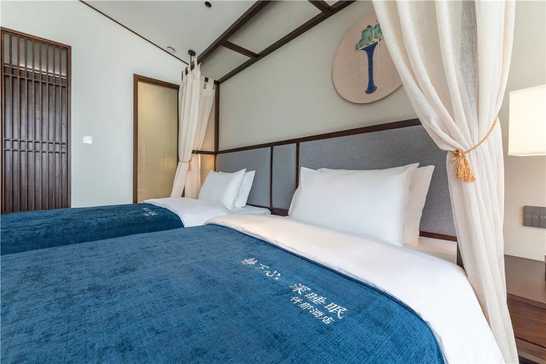 酒店采用高档床品、枕芯采用立体羽丝绒枕,被芯采用超柔云绒被,毛巾、浴巾、地巾、天然乳胶床垫、世界杯平台订制品牌洗漱用品,世界杯下单平台定制牙具香皂等客用品七种。酒店共有客房61间,配备55寸智能电视、