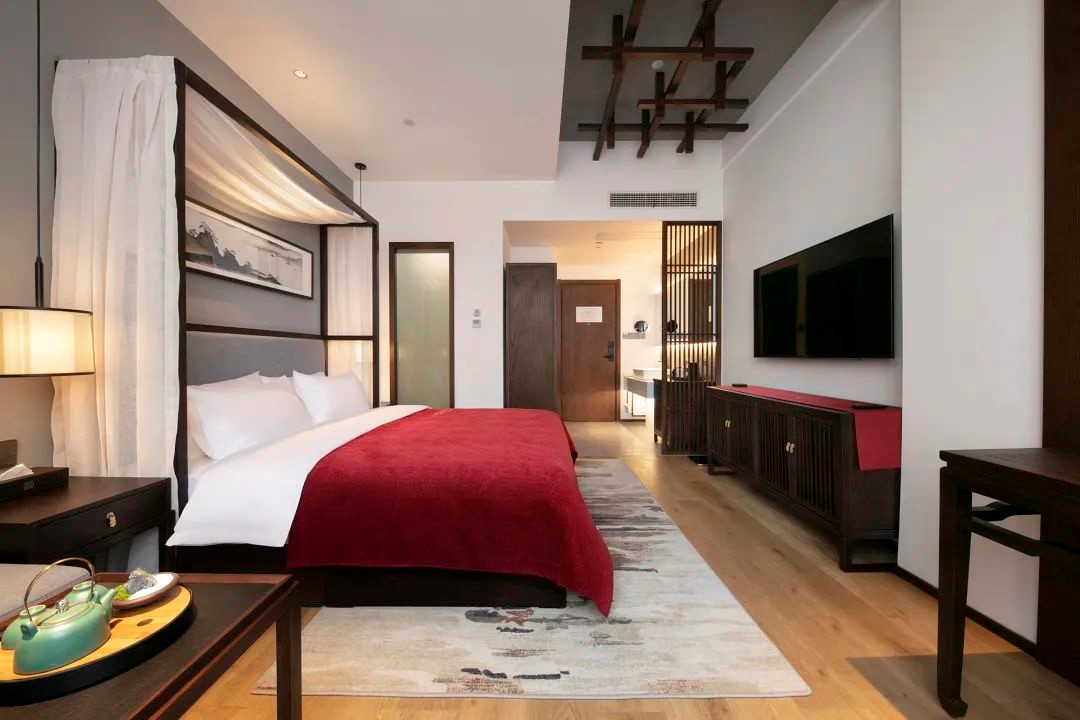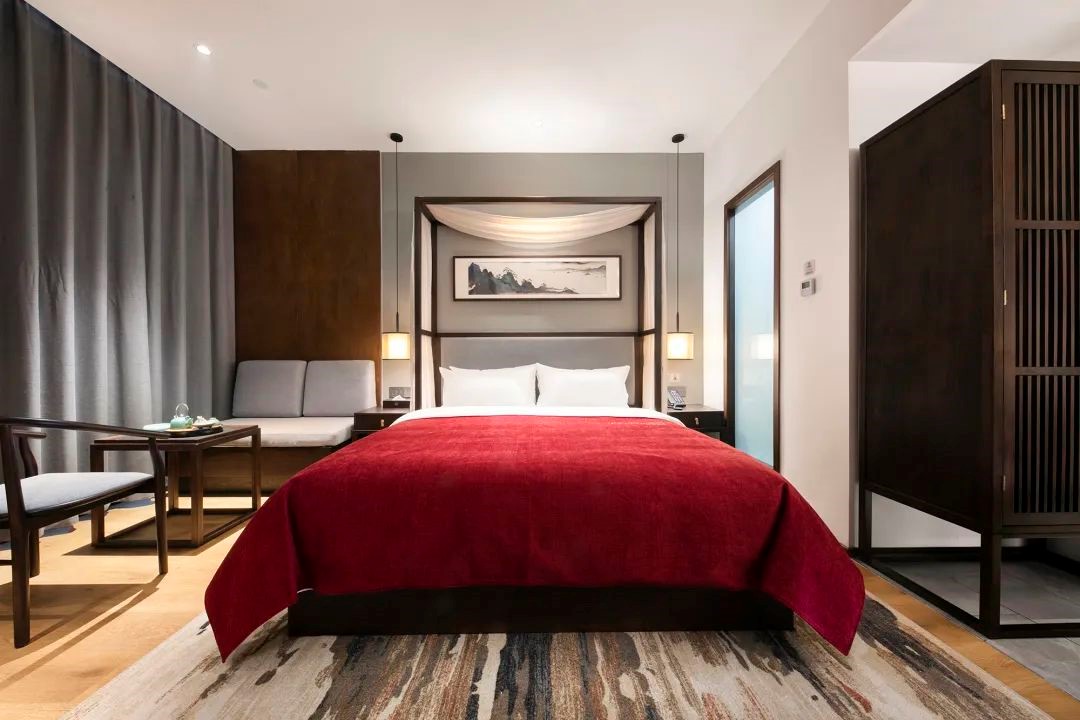 酒店客房房型众多,可供选择,每间房都有自己的特色。房间风格简约独特、低调奢华,为您在闹市中打造一处幽居,褪去内心的浮躁,寻回处久违的平静。 每间房的设计风格, 都与中国传统美好的中式元素相呼应。 纱幔、山水画、茶台、书法砚台、 实木灯饰等古色的装饰和家具, 充分展示了中国传统美学的雅致风韵。 世界杯下单平台将中国传统美好的中式元素融入当代生活方式里, 通过酒店独特的艺术与人文气息, 向居客传达美学生活的旅居体验,为心灵找到久违的平静。