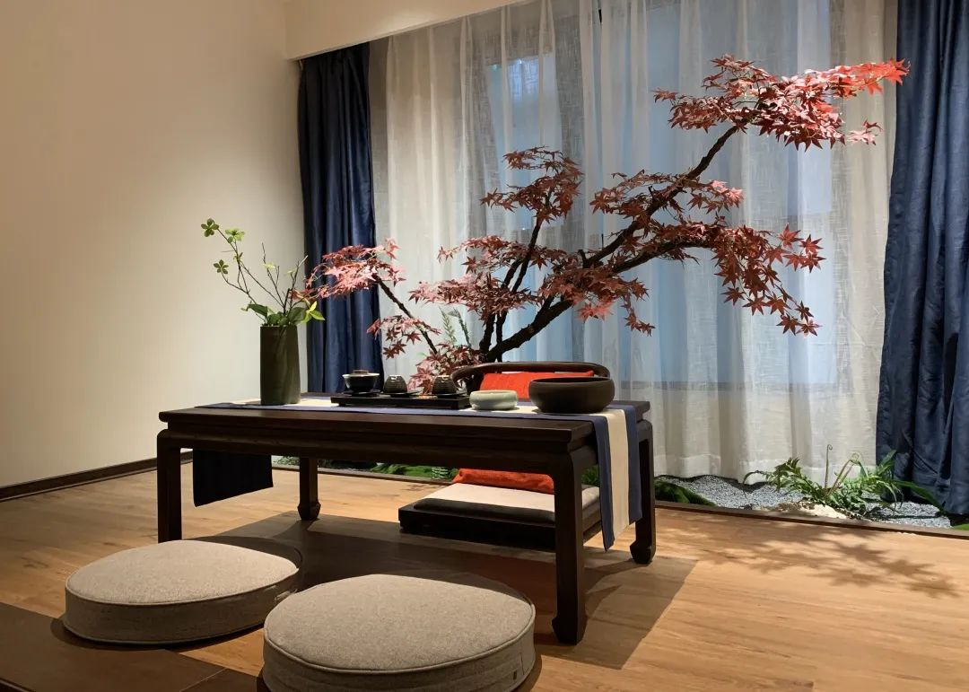 一个大大的方窗,是中式园林常用的框景手法,人在房间里就可以享受到户外的绿植景观,感受与自然的亲近,诗意盎然。