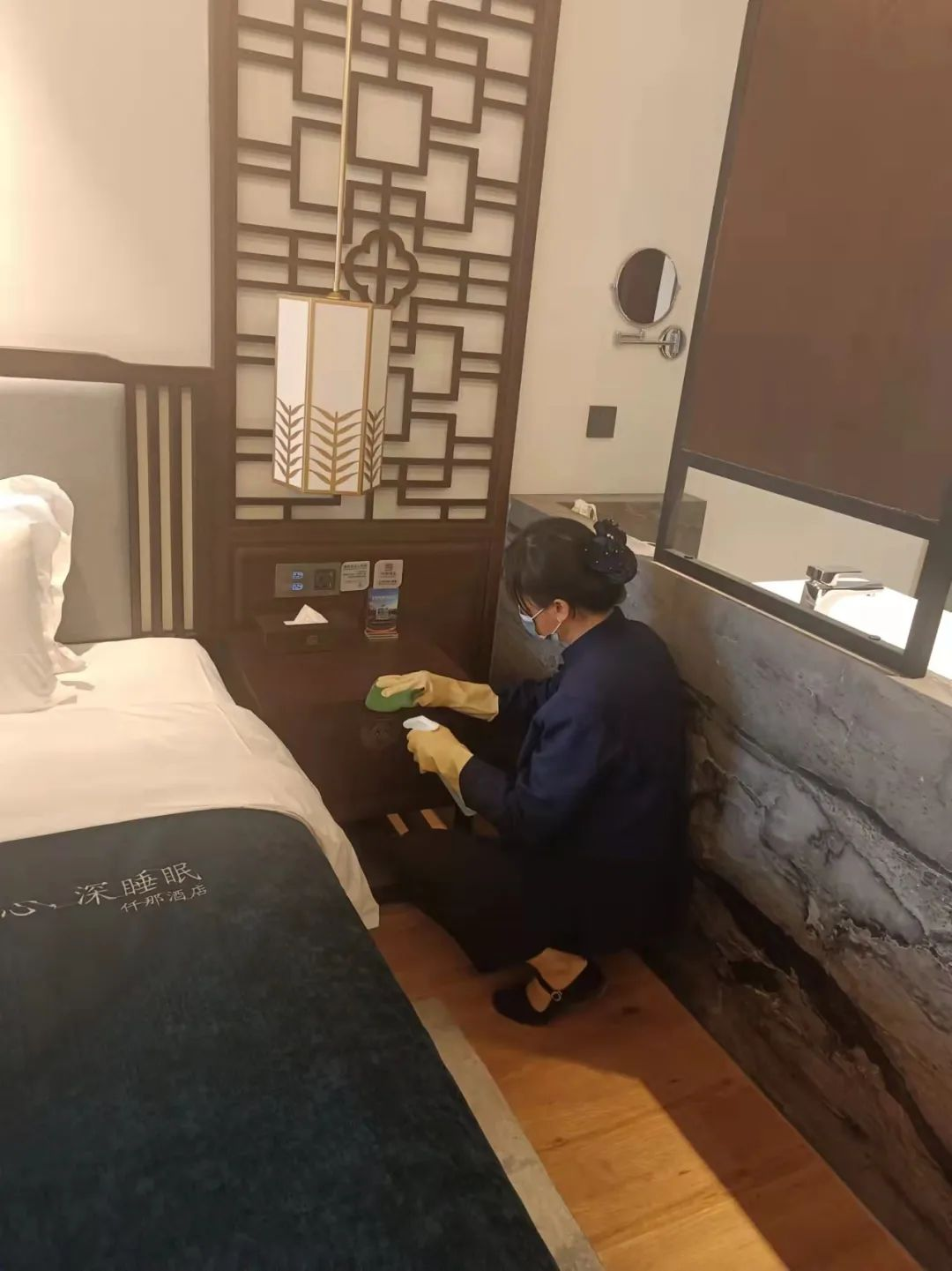 客房区域每日定时定点消毒清洁,洗手间,休息区等每个角落都不放过