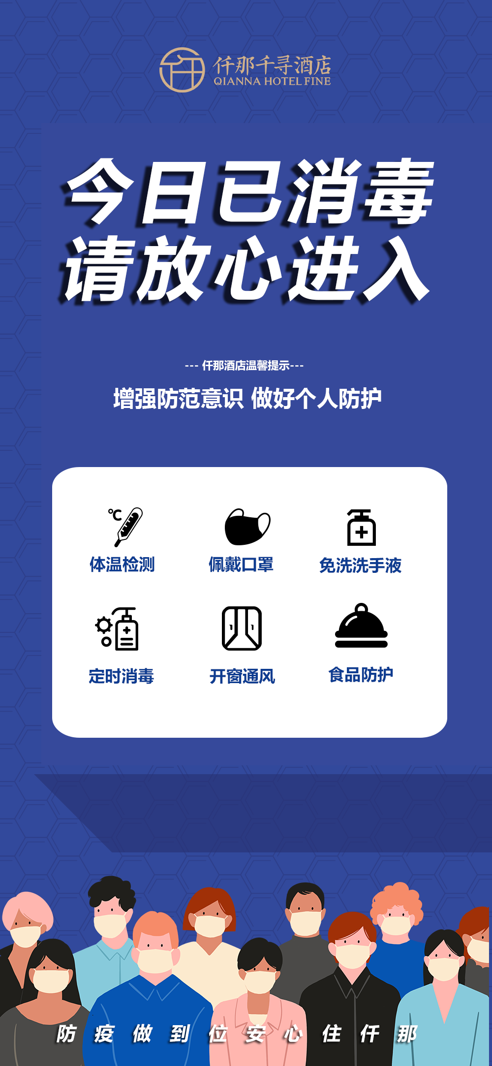 进入酒店区域需全程佩戴口罩,进出酒店需体温检测