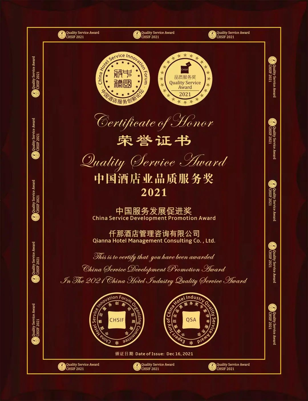 获奖简报|世界杯下单平台荣膺“2021中国酒店服务业标杆奖和中国服务发展促进奖”