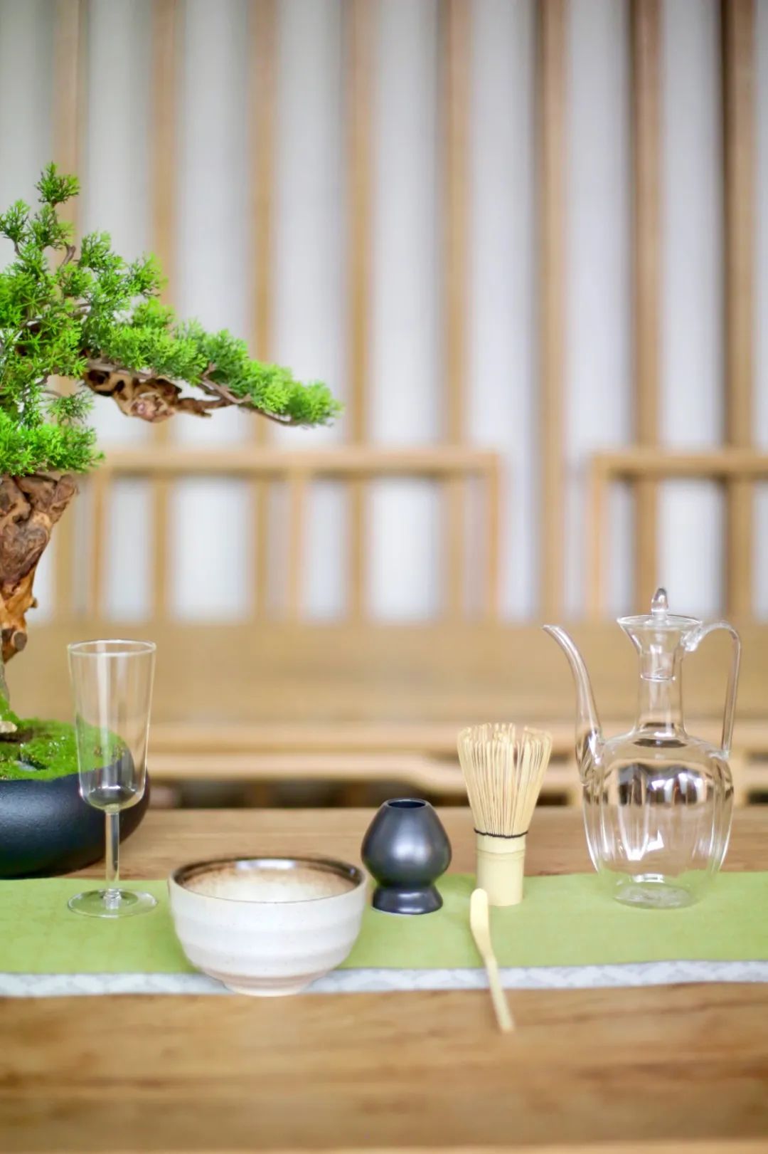 偶尔会配上几件玻璃器具在茶席上错落铺陈