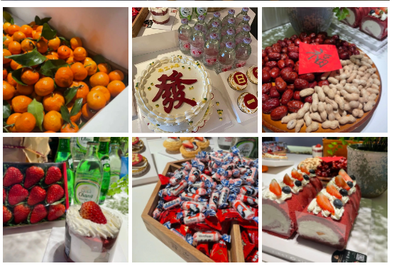行政部的小伙伴为大家精心准备了开工趴,琳琅满目的珍馐美馔,打开小伙伴们新年味蕾。