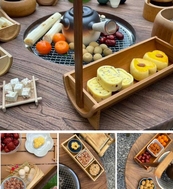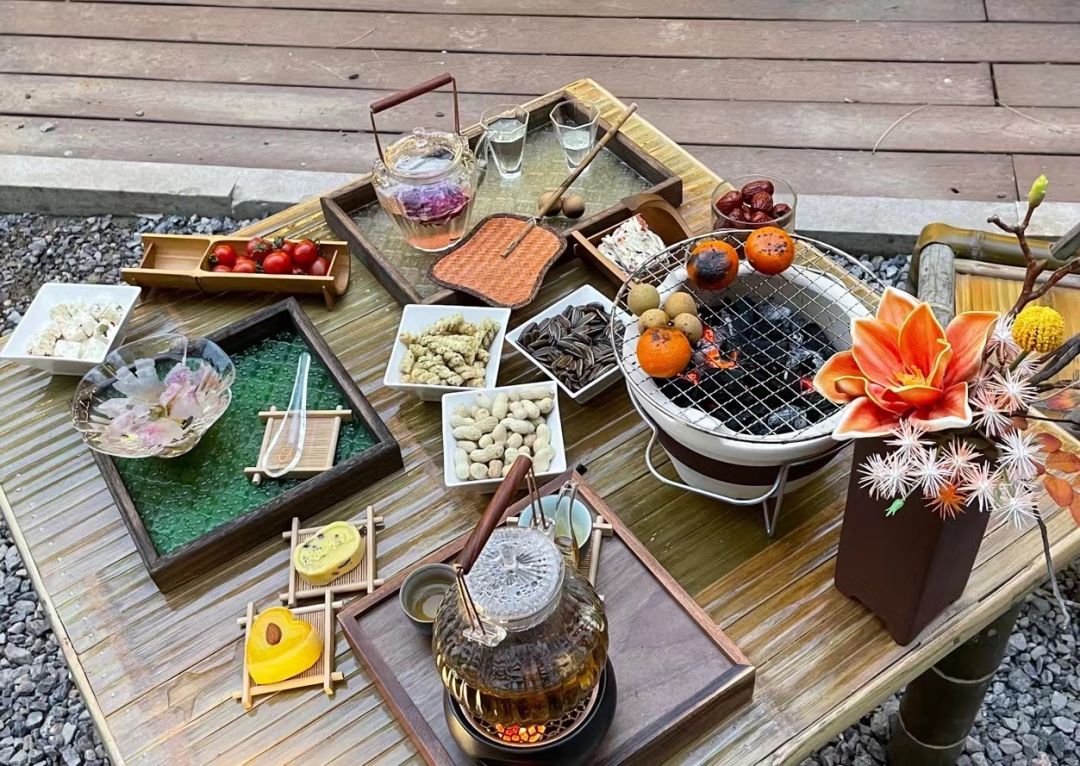 根据茶点和烤物的不同,推出适合不同客群享用的围炉煮茶套餐,提供大红袍、普洱、荒野白茶和正山小种等多种茶种选择,适当搭配陈皮、红枣等混合煮饮,让喝茶有多方式,让茶味更显醇厚。